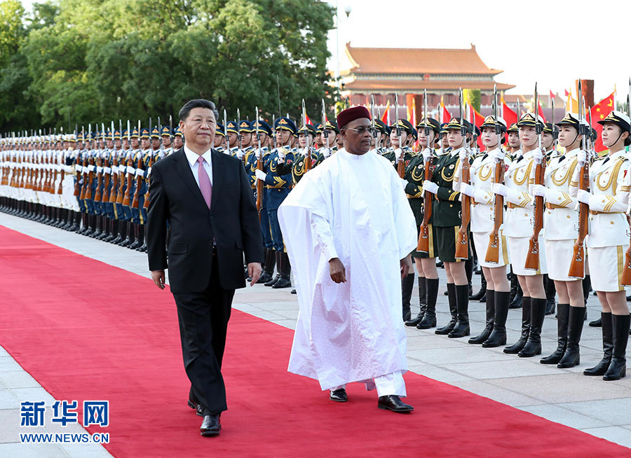 5月28日,國(guó)家主席習(xí)近平在北京人民大會(huì)堂同尼日爾總統(tǒng)伊素福舉行會(huì)談。這是會(huì)談前,習(xí)近平在人民大會(huì)堂東門外廣場(chǎng)為伊素福舉行歡迎儀式。 新華社記者 殷博古 攝