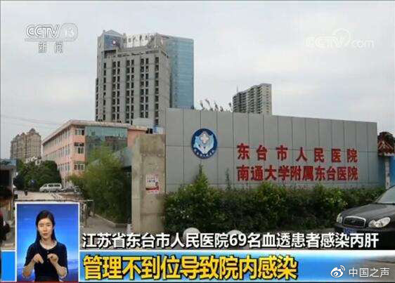 據(jù)中國之聲報道:幾天來,中國之聲持續(xù)關注江蘇鹽城東臺市人民醫(yī)院血液透析病人爆發(fā)院內丙肝感染一事。今年4月初到5月,東臺市人民醫(yī)院血液凈化中心血透患者疑似發(fā)生院內丙肝感染,經(jīng)對所有血透患者的篩查檢測,共診斷確認丙肝病毒感染69例。