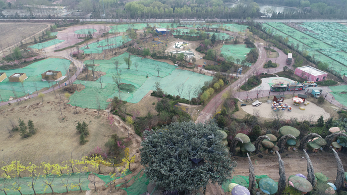黃河大堤內(nèi)修建的違建項(xiàng)目法莉蘭童話王國主題樂園航拍。李鵬 尚昆侖 攝
