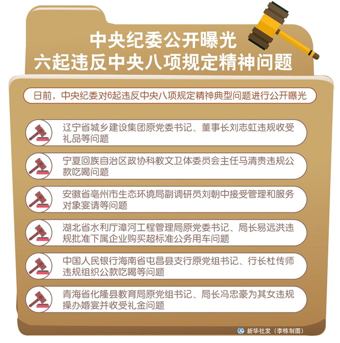 新華社北京6月3日電 日前,中央紀(jì)委對6起違反中央八項規(guī)定精神典型問題進(jìn)行公開曝光。這6起典型問題是: