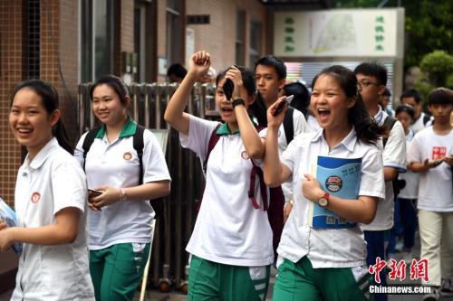 資料圖:6月8日,廣州華師附中考點(diǎn),考生在考試結(jié)束后輕松走出考場。中新社記者 姬東 攝