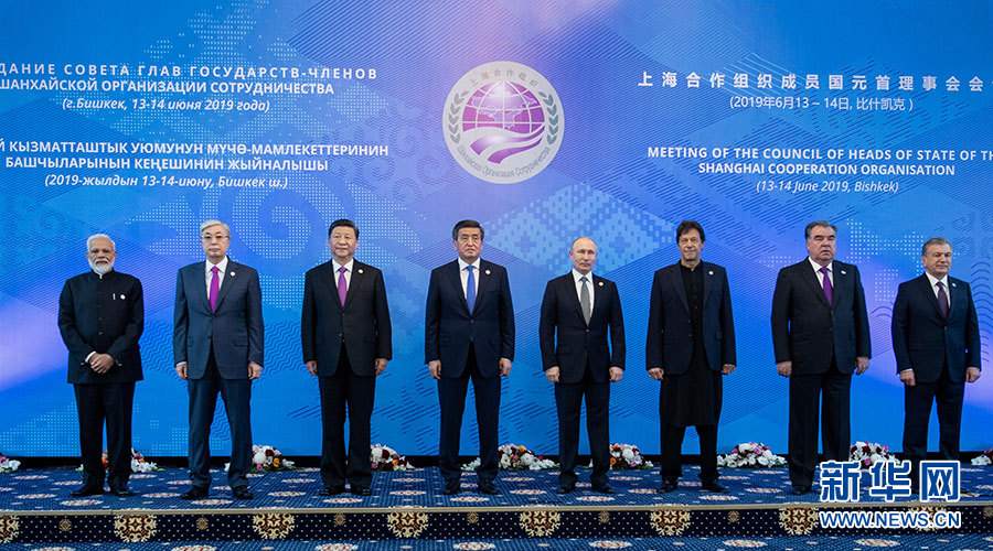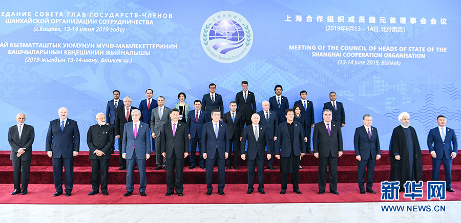 6月14日,上海合作組織成員國元首理事會第十九次會議在吉爾吉斯斯坦首都比什凱克舉行。國家主席習近平同印度總理莫迪、哈薩克斯坦總統(tǒng)托卡耶夫、吉爾吉斯斯坦總統(tǒng)熱恩別科夫、巴基斯坦總理伊姆蘭·汗、俄羅斯總統(tǒng)普京、塔吉克斯坦總統(tǒng)拉赫蒙、烏茲別克斯坦總統(tǒng)米爾濟約耶夫出席會議。習近平在會上發(fā)表重要講話。這是小范圍會談前,上海合作組織成員國元首集體合影。 新華社記者 謝環(huán)馳 攝