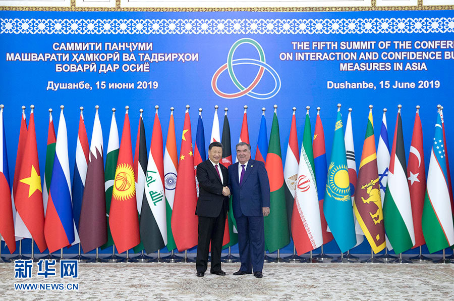 6月15日,亞洲相互協(xié)作與信任措施會(huì)議第五次峰會(huì)在塔吉克斯坦首都杜尚別舉行。國家主席習(xí)近平出席峰會(huì)并發(fā)表題為《攜手開創(chuàng)亞洲安全和發(fā)展新局面》的重要講話。 新華社記者 李濤 攝