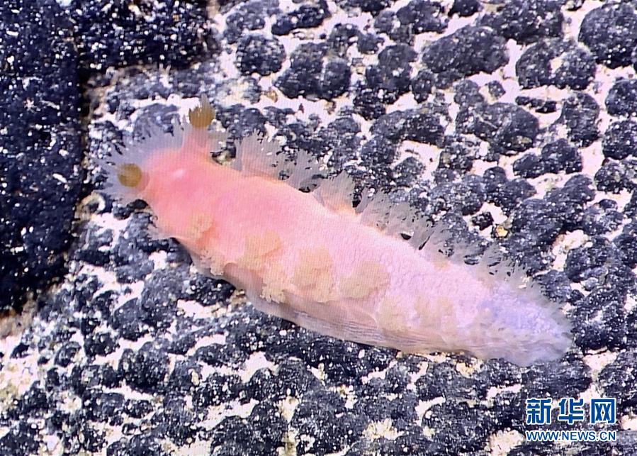 “發(fā)現(xiàn)”號遙控?zé)o人潛水器在海山拍攝到的海兔(5月27日攝)。新華社發(fā)