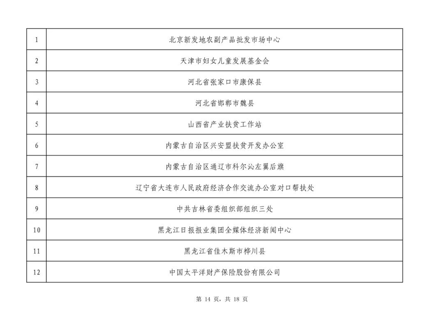 2019年全國脫貧攻堅(jiān)獎(jiǎng)初評(píng)候選人(單位)