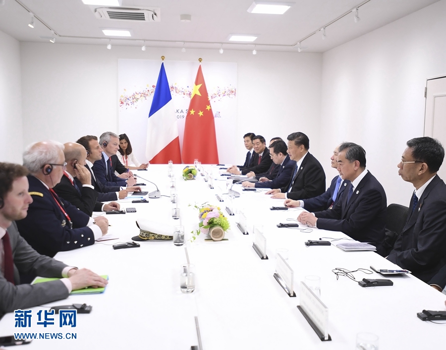 6月29日,國(guó)家主席習(xí)近平在大阪會(huì)見(jiàn)法國(guó)總統(tǒng)馬克龍。 新華社記者 燕雁 攝