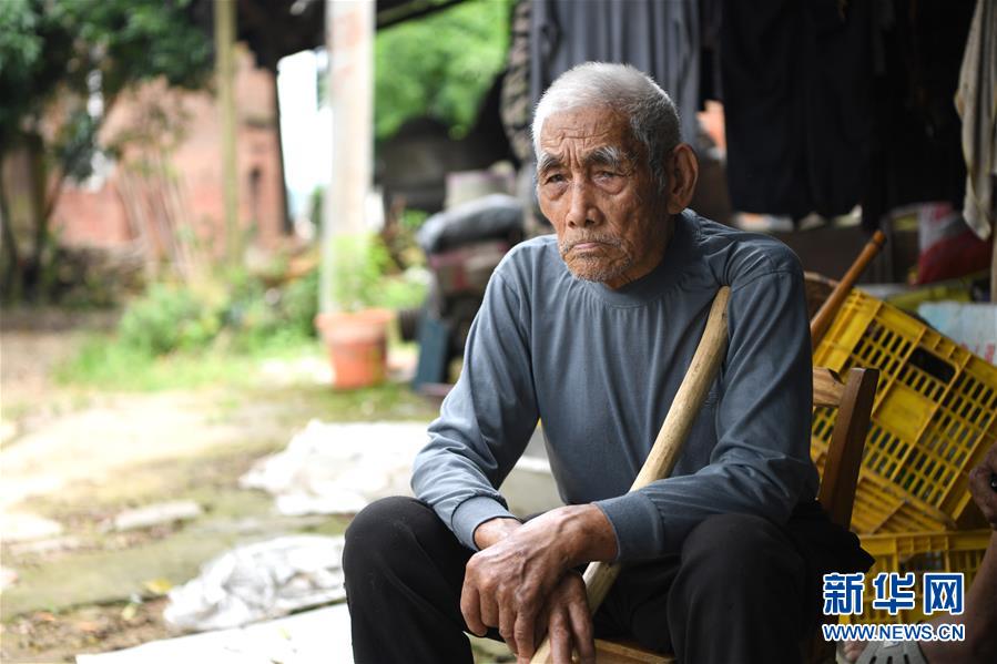 全州縣鳳凰嘴渡口旁,蔣濟勇老人向再走長征路的記者們講述自己11歲經(jīng)歷的湘江戰(zhàn)役(6月29日攝)。新華社記者 周華 攝