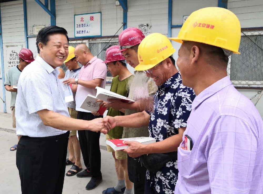 朱時(shí)華向農(nóng)民工贈(zèng)書。(圖片由朱時(shí)華提供)