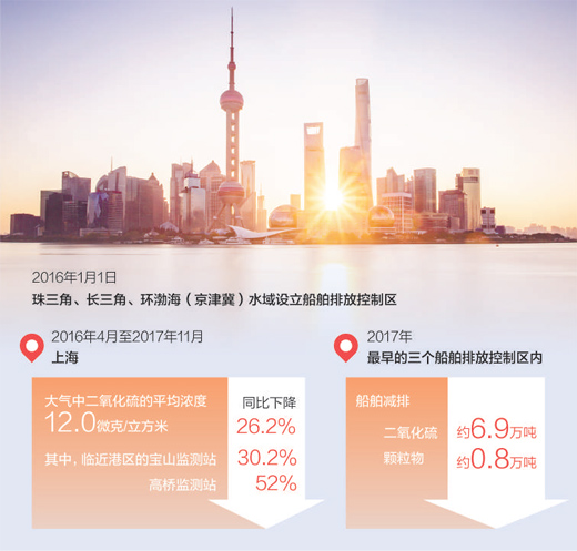 限硫帶來了空氣質(zhì)量的持續(xù)向好。在上海,2016年4月至2017年11月期間,大氣中二氧化硫的平均濃度為12.0微克/立方米,同比下降26.2%。其中,臨近港區(qū)的寶山監(jiān)測站、高橋監(jiān)測站的二氧化硫濃度同比分別下降30.2%、52%。深圳東部港區(qū)、京唐港等控制區(qū)內(nèi)的監(jiān)測數(shù)據(jù)也顯示,港口硫氧化物降幅十分明顯。