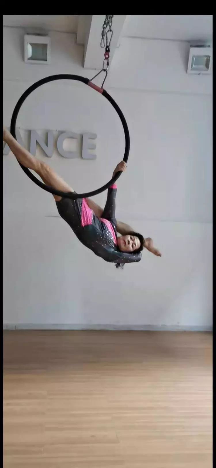 伴隨舒緩悠長(zhǎng)的音樂(lè),戴大麗在鋼管上翩翩起舞。她體態(tài)輕盈,渾似漫步太空,用力不露痕跡,地心引力似乎對(duì)她不起作用。