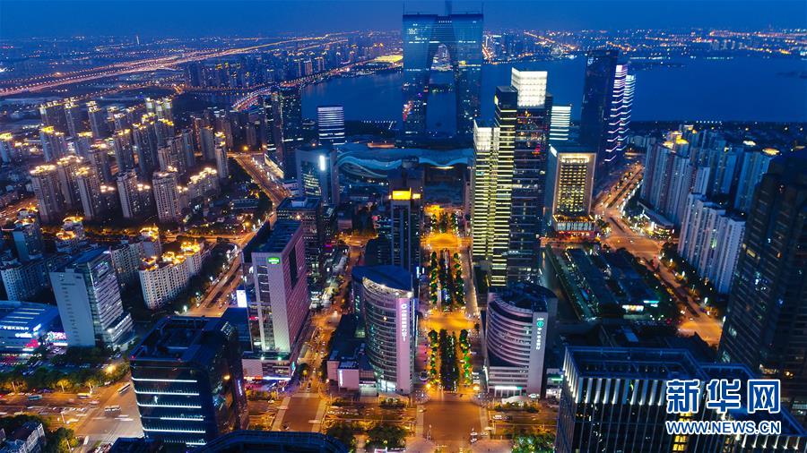 蘇州工業(yè)園區(qū)夜景(2017年5月9日無(wú)人機(jī)拍攝)。新華社記者 李響 攝