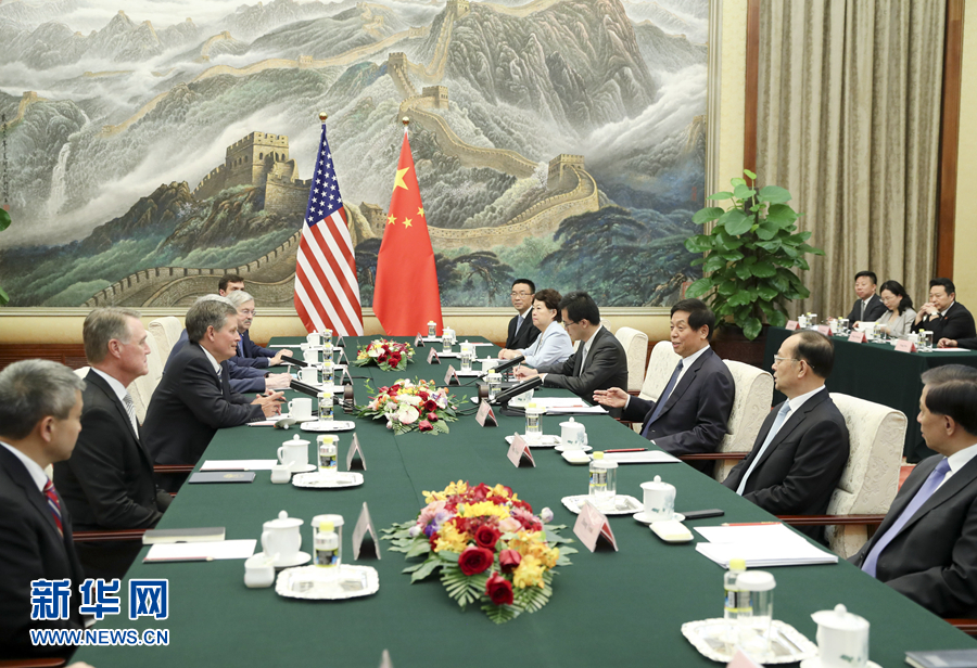 9月2日,全國(guó)人大常委會(huì)委員長(zhǎng)栗戰(zhàn)書(shū)在北京人民大會(huì)堂會(huì)見(jiàn)美國(guó)國(guó)會(huì)參議院“美中工作小組”共同主席、參議員戴恩斯和參議員珀杜一行。 新華社記者 丁海濤 攝
