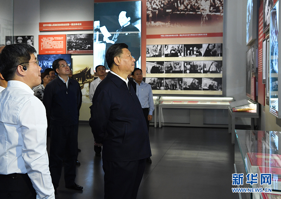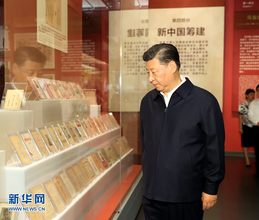 9月12日,中共中央總書記、國(guó)家主席、中央軍委主席習(xí)近平視察中共中央北京香山革命紀(jì)念地。這是習(xí)近平在香山革命紀(jì)念館參觀《為新中國(guó)奠基》主題展覽。 新華社記者 黃敬文 攝