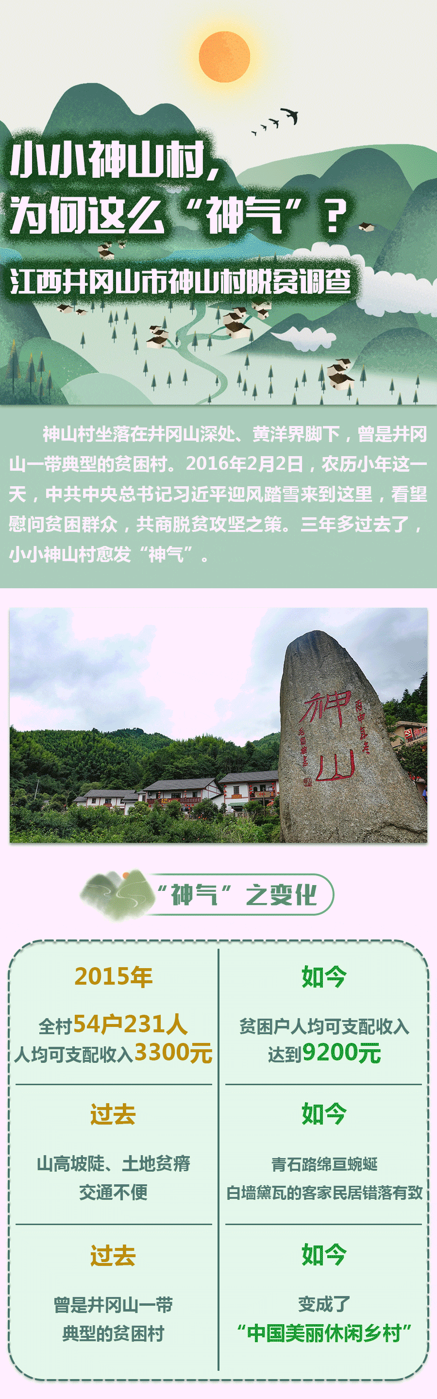 小小神山村,像這樣的故事還很多。在跨越時空的井岡山精神鼓舞下,神山村正闊步行進在新時代鄉(xiāng)村振興的大路上,必將書寫更多新的“神氣”故事。