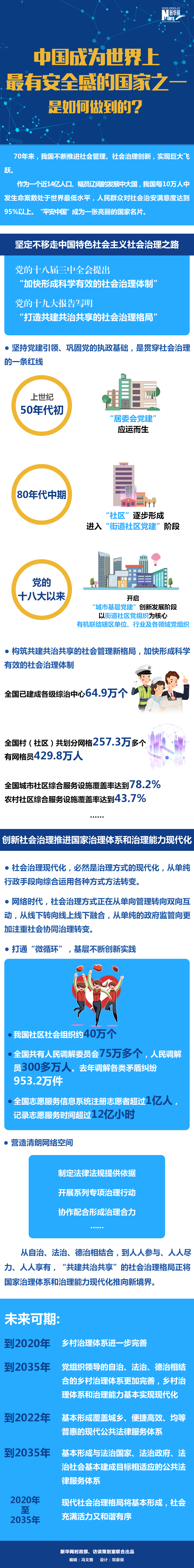 70年篳路藍(lán)縷,70年櫛風(fēng)沐雨。新中國持續(xù)推進(jìn)社會(huì)領(lǐng)域變革、堅(jiān)定走向社會(huì)治理現(xiàn)代化,呈現(xiàn)出經(jīng)濟(jì)持續(xù)健康發(fā)展、社會(huì)大局穩(wěn)定的良好局面。中國成為世界上最有安全感的國家之一。