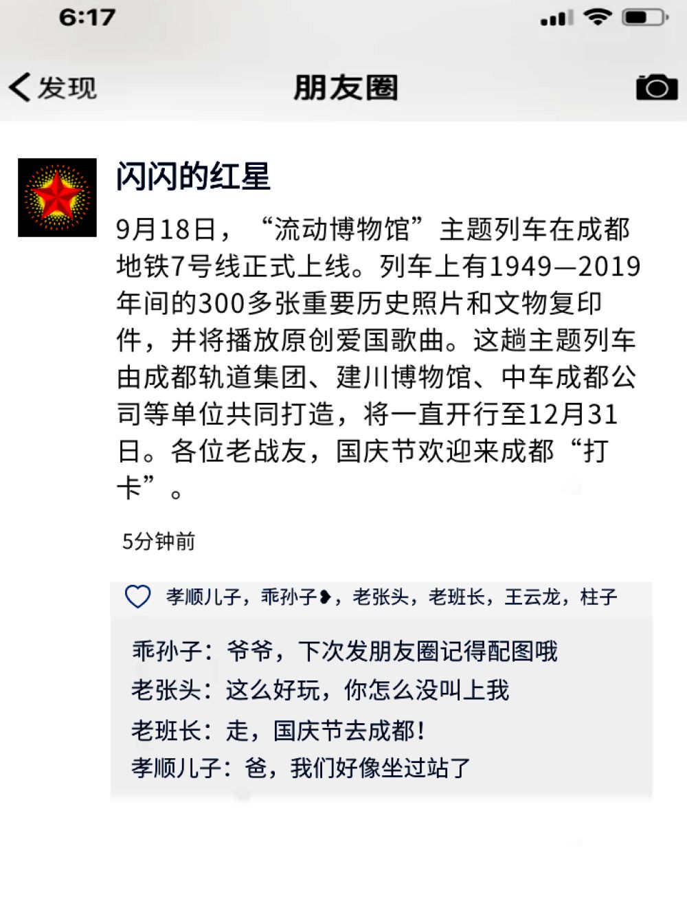 我: 爺爺,手機上有朋友圈,可以看到你的戰(zhàn)友們的動態(tài)