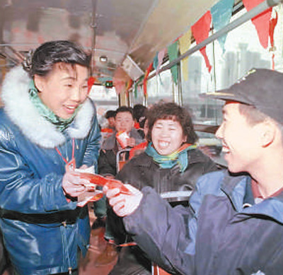 “北京有個李素麗(見圖左一,新華社發(fā)),服務(wù)那可真周到?!睅资赀^去了,公交車售票員李素麗,仍被人們津津樂道。