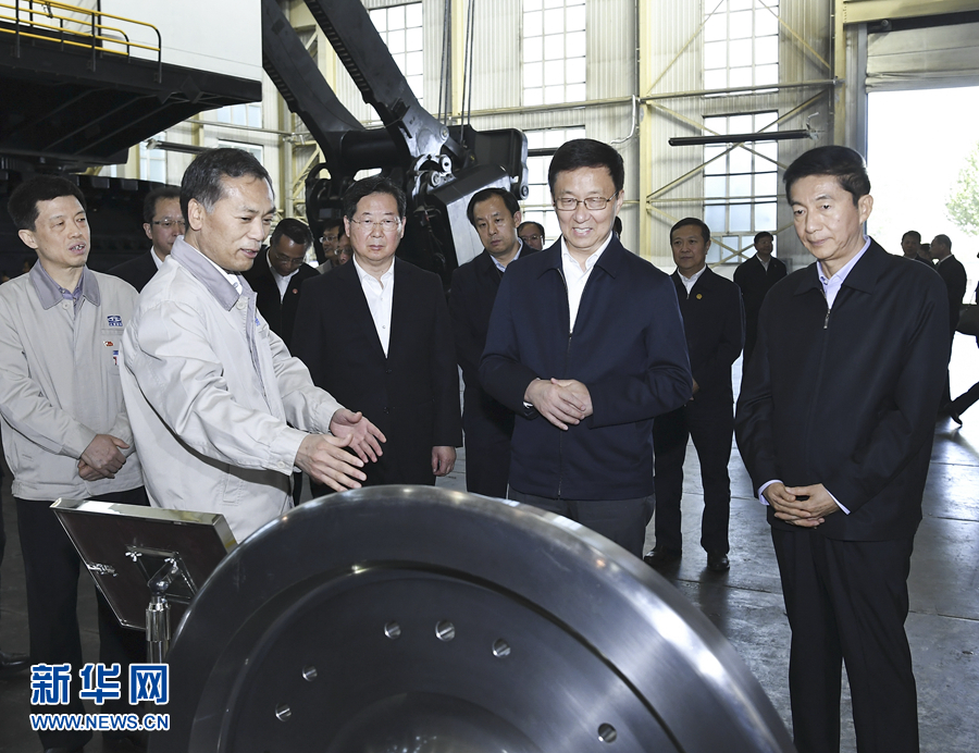 太原重型機(jī)械集團(tuán)有限責(zé)任公司是新中國(guó)自行設(shè)計(jì)建設(shè)的第一座重型機(jī)械廠(chǎng)。韓正來(lái)到這里,考察礦山挖掘機(jī)、高鐵輪對(duì)等先進(jìn)機(jī)械研發(fā)生產(chǎn)情況。韓正強(qiáng)調(diào),重型機(jī)械是國(guó)之重器,是先進(jìn)制造業(yè)的重要支撐,要加快產(chǎn)品智能化步伐,提高生產(chǎn)線(xiàn)和生產(chǎn)設(shè)備的國(guó)產(chǎn)化率,實(shí)現(xiàn)精密零部件加工的技術(shù)突破,積極拓展“一帶一路”沿線(xiàn)國(guó)家市場(chǎng),加強(qiáng)人才隊(duì)伍建設(shè),打造具有國(guó)際競(jìng)爭(zhēng)力的高端裝備制造產(chǎn)業(yè)。韓正走進(jìn)生產(chǎn)車(chē)間,勉勵(lì)一線(xiàn)工人抓住轉(zhuǎn)型升級(jí)機(jī)遇,推動(dòng)企業(yè)加快發(fā)展,實(shí)現(xiàn)個(gè)人價(jià)值。