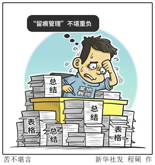 不少教師反映,需要用大量材料證明“真干了”的“留痕管理”,令人不堪重負(fù)。