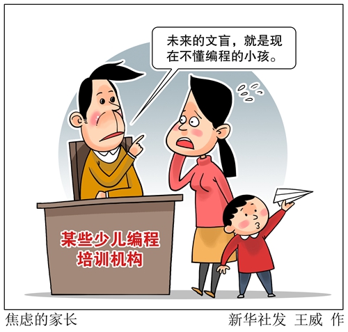 “未來的文盲,就是現(xiàn)在不懂編程的小孩”“不會寫代碼就喪失了網(wǎng)絡生存能力”……近來,大量引發(fā)家長焦慮感的少兒編程廣告,充斥于自媒體和公共場所?!靶氯A視點”記者調(diào)查發(fā)現(xiàn),繼奧數(shù)、英語之后,少兒編程成為最新教育培訓熱點。少兒編程如此火爆,誰是幕后推手?家長是否應該讓孩子學編程?