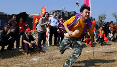 11月9日,一群巖羊在青?,斍呖h境內的山上活動。新華社記者 張龍 攝