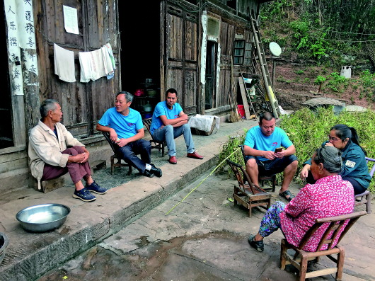 ▲鄭海青(右二)到貧困戶家里了解情況。