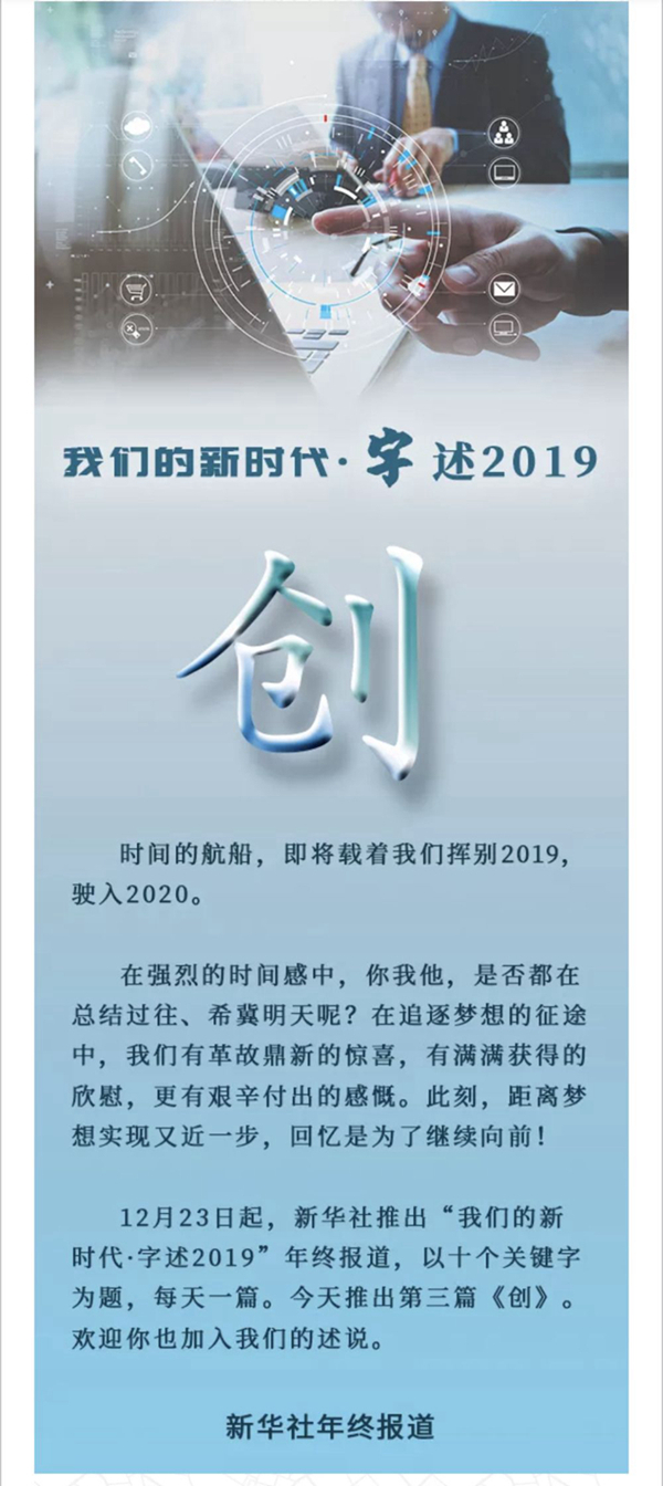 鴻蒙初辟,天地始開。不經(jīng)一番篳路藍縷,哪來春華秋實?不信你看,創(chuàng)新路上,載人航天再飛天,大興機場始展翅,國產(chǎn)航母初入列……2019一個個“中國創(chuàng)造”,向世人展示大國創(chuàng)新的萬千氣象!