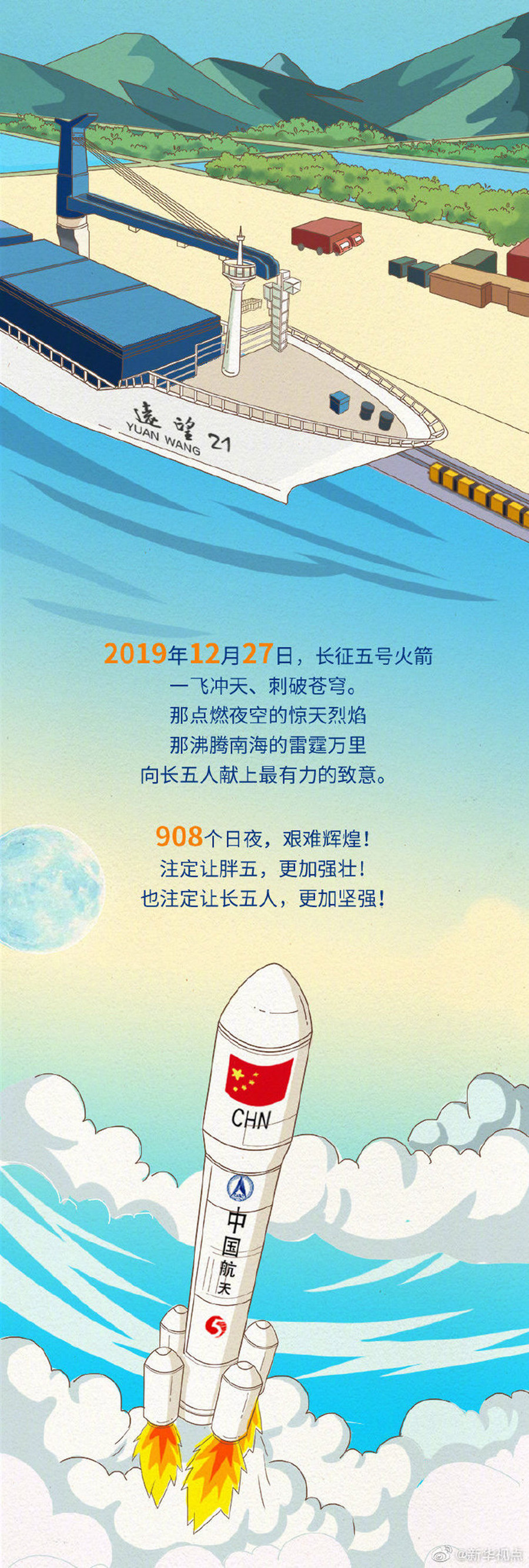 南海之濱,今夜無(wú)眠。長(zhǎng)征五號(hào)再度啟航,承載著無(wú)數(shù)中國(guó)人的光榮與夢(mèng)想,開(kāi)辟了中國(guó)通往太空更加寬廣的天梯。