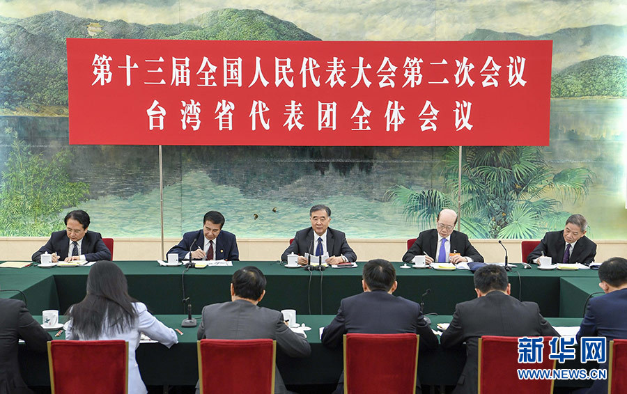 汪洋分別參加臺灣代表團、云南代表團審議。在臺灣代表團,汪洋在認真聽取符之冠、陳云英、陳軍等代表發(fā)言后指出,習(xí)近平總書記在《告臺灣同胞書》發(fā)表40周年紀念會上的重要講話,是指引新時代對臺工作的綱領(lǐng)性文獻。要學(xué)深悟透講話的精神實質(zhì)和核心要義,深刻認識兩岸統(tǒng)一是歷史大勢,牢牢把握對臺工作正確方向。要廣泛深入聽取臺灣同胞的意見,完善配套政策,把促進兩岸經(jīng)濟文化交流合作“31條措施”等惠臺舉措落到實處,深化兩岸融合發(fā)展。要堅持一個中國原則和“九二共識”,堅決反對“臺獨”,團結(jié)更多臺灣同胞共擔民族大義,為推動兩岸關(guān)系和平發(fā)展、推進祖國和平統(tǒng)一進程作出更大貢獻。在云南代表團,汪洋認真聽取阮成發(fā)、馬正山、玉龍等代表的發(fā)言,充分肯定過去一年云南改革發(fā)展取得的成績。他希望云南深入貫徹習(xí)近平總書記對云南工作的重要指示精神,堅定不移落實黨的民族政策和宗教工作基本方針,大力幫助人口較少民族和“直過民族”發(fā)展,努力打造民族團結(jié)進步示范區(qū)。要堅決打好脫貧攻堅戰(zhàn),努力攻克深度貧困堡壘,著力提高脫貧質(zhì)量,確保全面小康路上一個都不掉隊。