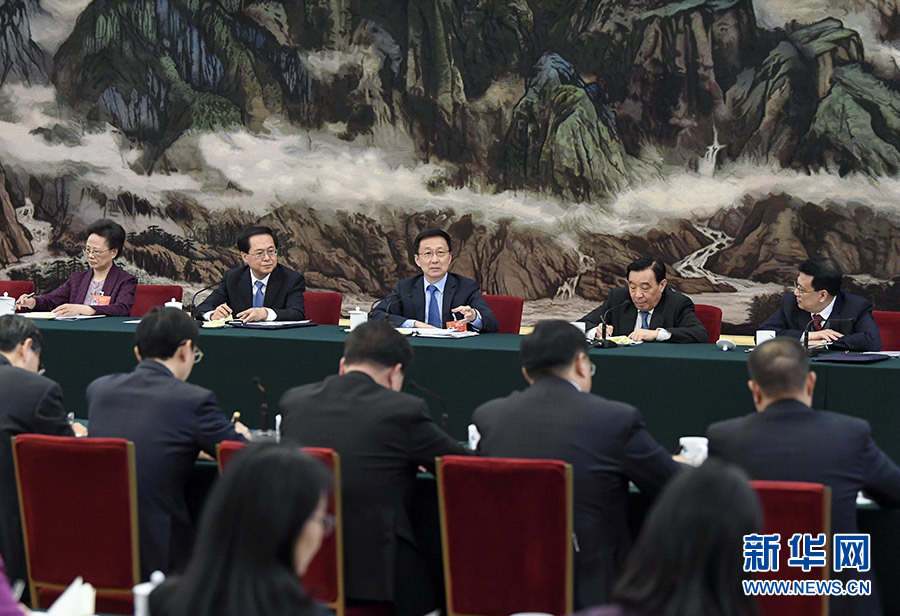 3月7日,中共中央政治局常委、國(guó)務(wù)院副總理韓正參加十三屆全國(guó)人大二次會(huì)議浙江代表團(tuán)的審議。 新華社記者 高潔 攝