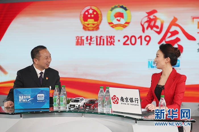 全國(guó)人大代表、東風(fēng)商用車(chē)有限公司車(chē)輛工廠調(diào)檢一車(chē)間“王濤班”班長(zhǎng)王建清做客新華網(wǎng)2019全國(guó)兩會(huì)特別報(bào)道。新華網(wǎng)?郭小天 攝