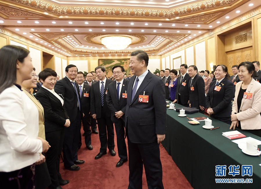 3月8日,中共中央總書(shū)記、國(guó)家主席、中央軍委主席習(xí)近平參加十三屆全國(guó)人大二次會(huì)議河南代表團(tuán)的審議。在“三八”國(guó)際勞動(dòng)?jì)D女節(jié)到來(lái)之際,習(xí)近平代表黨中央,向參加全國(guó)兩會(huì)的女代表、女委員、女工作人員,向全國(guó)各族各界婦女,致以節(jié)日的祝賀和美好的祝福。這是習(xí)近平同女代表親切交談。新華社記者 李學(xué)仁 攝