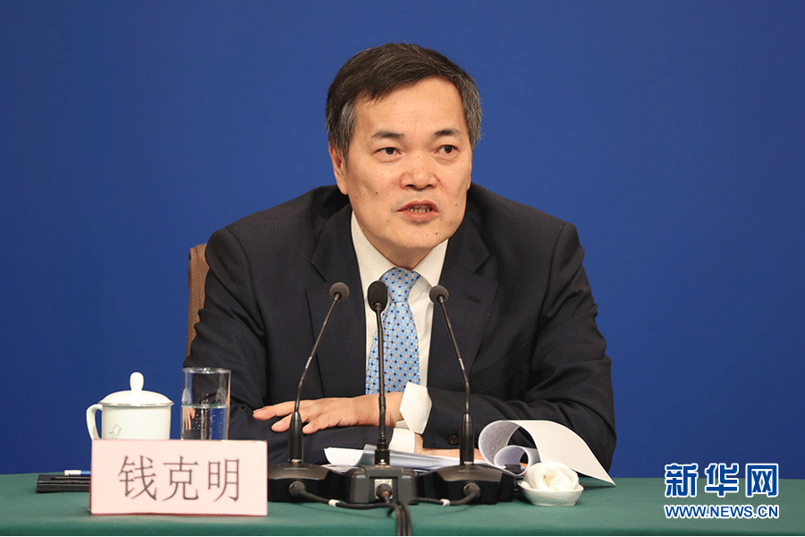 十三屆全國人大二次會議新聞中心3月9日(星期六)10時30分在梅地亞中心新聞發(fā)布廳舉行記者會,邀請商務(wù)部部長鐘山、副部長兼國際貿(mào)易談判副代表王受文、副部長錢克明就“促進(jìn)形成強(qiáng)大國內(nèi)市場 推動全方位對外開放”相關(guān)問題回答中外記者提問。圖為錢克明回答記者提問。新華網(wǎng)/中國政府網(wǎng) 陳杰 攝