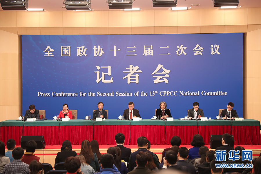 全國(guó)政協(xié)十三屆二次會(huì)議3月10日(星期日)上午8:45在梅地亞兩會(huì)新聞中心舉行記者會(huì),邀請(qǐng)5位政協(xié)委員就“新時(shí)代政協(xié)履職”回答記者提問。圖為記者會(huì)現(xiàn)場(chǎng)。新華網(wǎng)、中國(guó)政府網(wǎng)進(jìn)行現(xiàn)場(chǎng)直播。新華網(wǎng)/中國(guó)政府網(wǎng) 劉廈攝