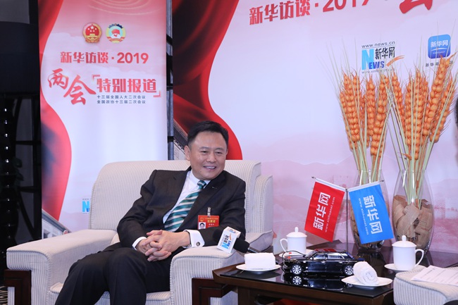3月12日,全國人大代表、中國第一汽車集團有限公司黨委書記、董事長徐留平做客新華網2019全國兩會特別報道。新華網 趙延心 攝