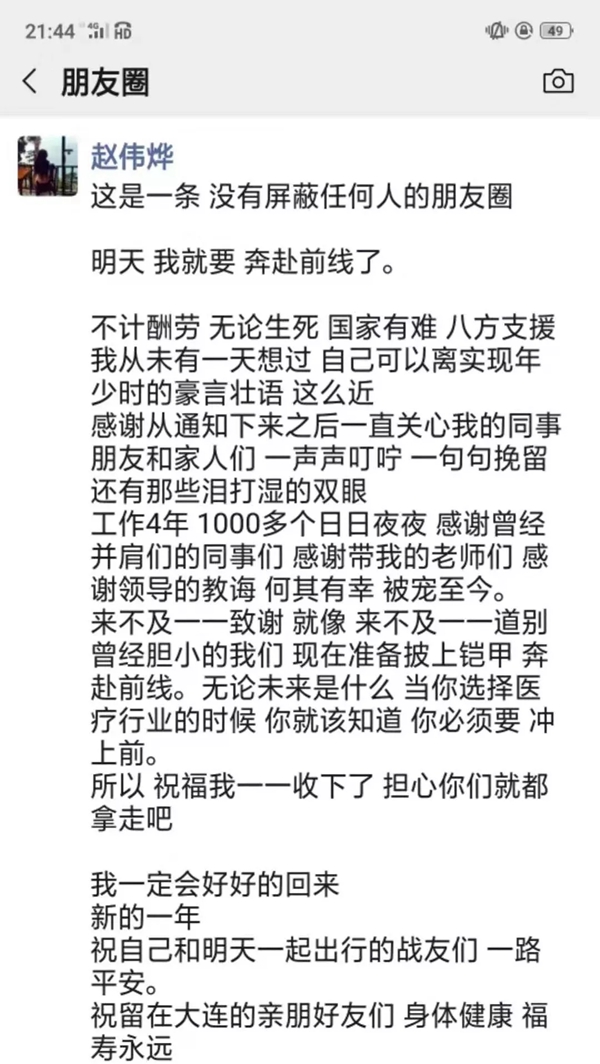 通知下發(fā)后,大連各大醫(yī)院醫(yī)護(hù)人員紛紛主動請纓:“只要被需要,義無反顧,放心吧主任,我強(qiáng)壯”“主任,我也可以去武漢,等待您的派遣”“一切聽從組織安排”“需要我們的時候到了,沒有硝煙的戰(zhàn)場需要我們,我自愿加入抗擊疫情的隊(duì)伍”……醫(yī)院微信群里被自愿報(bào)名聲刷屏。
