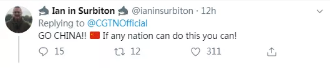 “如果有任何一個(gè)國(guó)家可以做到,那就是你們了!中國(guó)加油啊!”