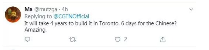 “只有中國(guó)才能在7天內(nèi)修建一個(gè)容納1000張床位的醫(yī)院了!這在英國(guó),花上7年的時(shí)間也就只夠決定到底能不能建造一個(gè)醫(yī)院.......”