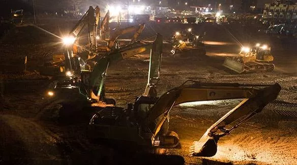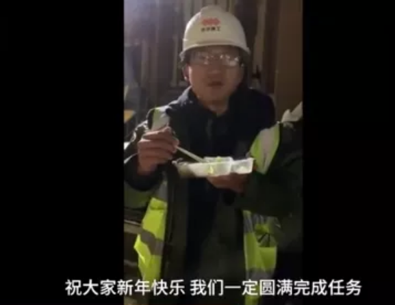 昨日除夕,上百臺(tái)機(jī)械在施工現(xiàn)場(chǎng)同時(shí)開(kāi)挖,工人們連晚飯也只是站在馬路邊上草草解決,又繼續(xù)投入戰(zhàn)斗。