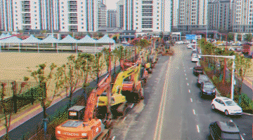 △建設(shè)者在平整完畢的地面上,鋪設(shè)20公分厚的砂子,并同步進行管道預(yù)埋穿插施工