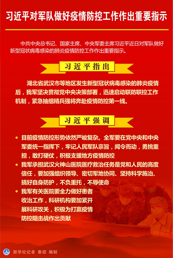 習(xí)近平對(duì)軍隊(duì)做好疫情防控工作作出重要指示強(qiáng)調(diào)