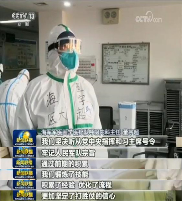 這里救治的都是重癥患者,連日來,中部戰(zhàn)區(qū)總醫(yī)院兩個發(fā)熱門診和五個救治專區(qū)的醫(yī)護人員不怕疲勞,不畏艱險,牢記人民軍隊根本宗旨,精心治療每一位患者。