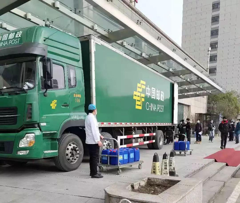 下了機(jī)場(chǎng)高速公路20多公里后順利抵達(dá)武漢郵區(qū)中心局,電話聯(lián)系了調(diào)度人員,直到這時(shí)我倆才知道,此行的目的地是武漢市疫情高危區(qū)——武漢大學(xué)中南醫(yī)院,車上的醫(yī)護(hù)用品是用來對(duì)感染病區(qū)進(jìn)行消毒的。當(dāng)時(shí)中南醫(yī)院物資緊缺,在全國各地遍尋支援,幾百公里外的江蘇鹽城援助了這珍貴的一車物資。