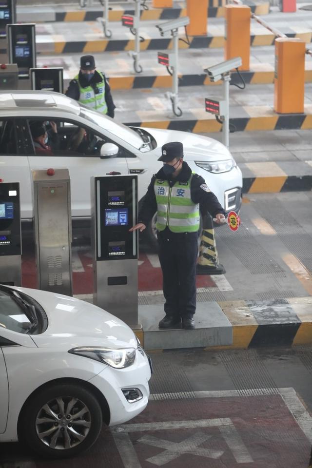 “現(xiàn)在我們每天有80名民警和輔警上崗,每班20人,每兩小時輪換一次。如果在檢查時遇到了車內(nèi)出現(xiàn)身體癥狀或體溫異常的乘客,會立即由衛(wèi)生防疫部門派來的醫(yī)生進行檢查,存在疑似可能的,立刻隔離,送開設(shè)發(fā)熱門診的醫(yī)院做進一步篩查。假如真的發(fā)生了與疑似病例密切接觸的情況,當班的20名民警、輔警也會暫時隔離,確保不會因為檢查站內(nèi)部工作人員感染,反而放大了疫情?!?/p>