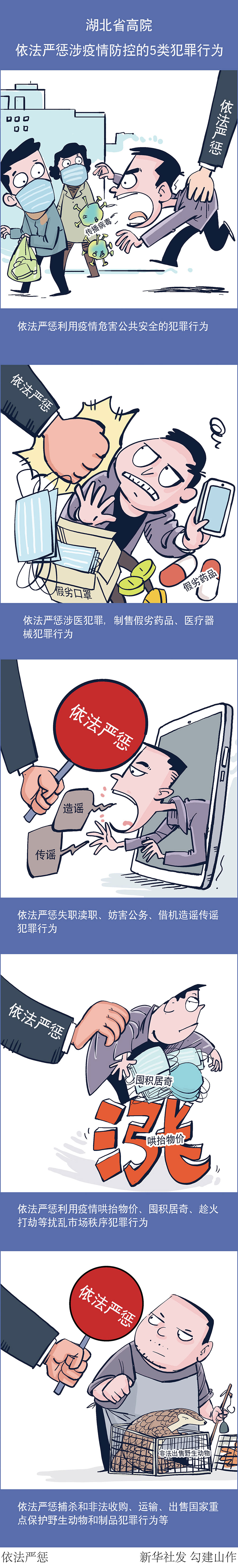 新華社武漢2月5日電(記者梁建強(qiáng))記者5日從湖北省高級(jí)人民法院獲悉,湖北省高院已制訂下發(fā)《關(guān)于充分發(fā)揮審判職能為新型冠狀病毒感染的肺炎疫情防控提供司法保障和服務(wù)的意見(jiàn)》,要求各級(jí)法院認(rèn)真落實(shí)黨中央、國(guó)務(wù)院、最高人民法院和湖北省委、省政府關(guān)于疫情防控相關(guān)決策部署,充分發(fā)揮審判職能作用,切實(shí)維護(hù)社會(huì)穩(wěn)定,保護(hù)廣大人民群眾的生命健康安全和合法權(quán)益。其中,明確了5類將依法嚴(yán)懲的刑事犯罪類型。