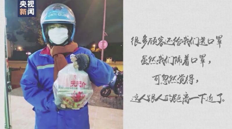 ????以前送餐的時候,最希望的就是顧客能理解我們,不管是點餐的顧客,還是小區(qū)物業(yè)值班的師傅都對我們非常好,很多顧客還給我們送口罩,雖然我們隔著口罩,可忽然覺得人跟人的距離一下近了。