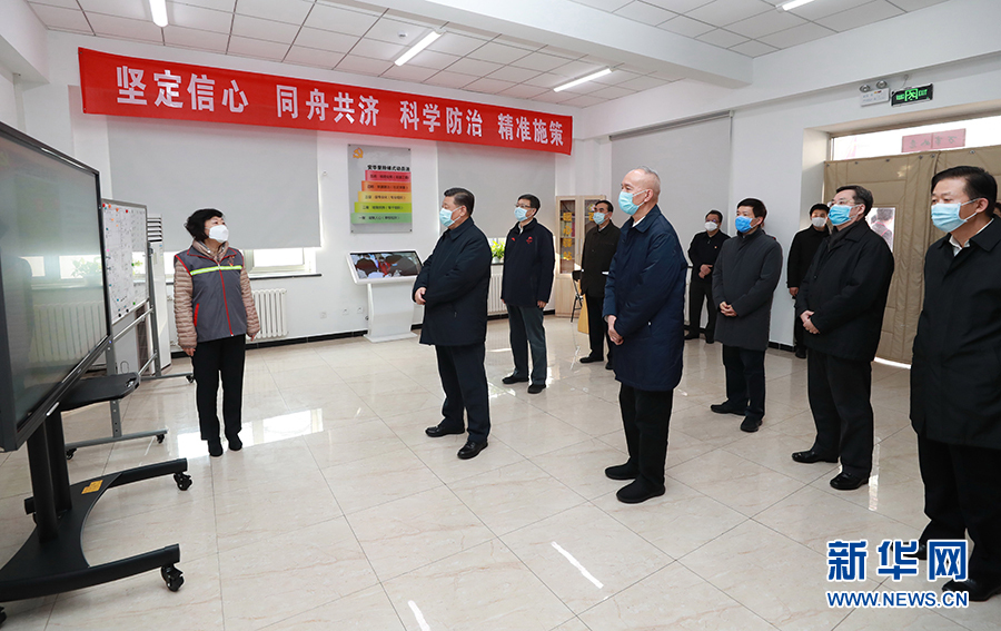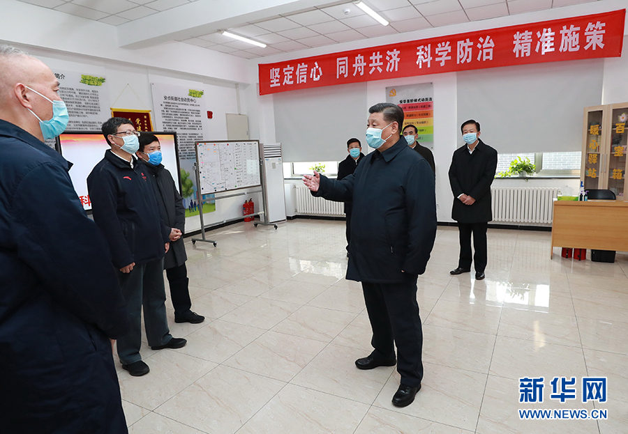 習近平首先來到北京市朝陽區(qū)安貞街道安華里社區(qū),了解基層一線疫情聯(lián)防聯(lián)控情況。在社區(qū)居民委員會疫情防控指揮部,習近平聽取了安貞街道和安華里社區(qū)開展聯(lián)防聯(lián)控情況介紹。習近平對社區(qū)采取多項措施,落實防控責任,實現(xiàn)入戶排查、重點群體監(jiān)控“兩個全覆蓋”等做法表示肯定。他強調(diào),社區(qū)是疫情聯(lián)防聯(lián)控的第一線,也是外防輸入、內(nèi)防擴散最有效的防線。把社區(qū)這道防線守住,就能有效切斷疫情擴散蔓延的渠道。全國都要充分發(fā)揮社區(qū)在疫情防控中的阻擊作用,把防控力量向社區(qū)下沉,加強社區(qū)各項防控措施的落實,使所有社區(qū)成為疫情防控的堅強堡壘。要以疫情防控工作成效來檢驗和拓展“不忘初心、牢記使命”主題教育成果,發(fā)揮基層黨組織政治引領作用和黨員先鋒模范作用,把社區(qū)居民發(fā)動起來,構筑起疫情防控的人民防線。