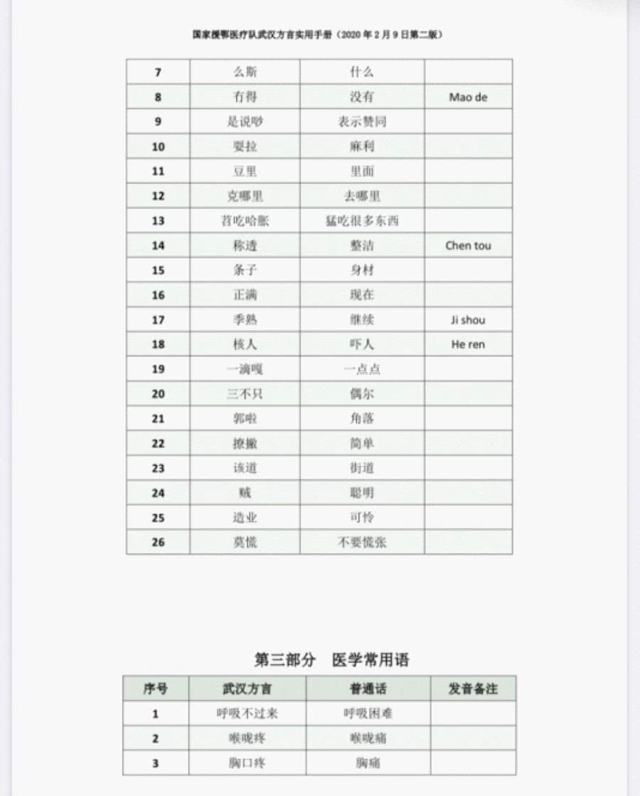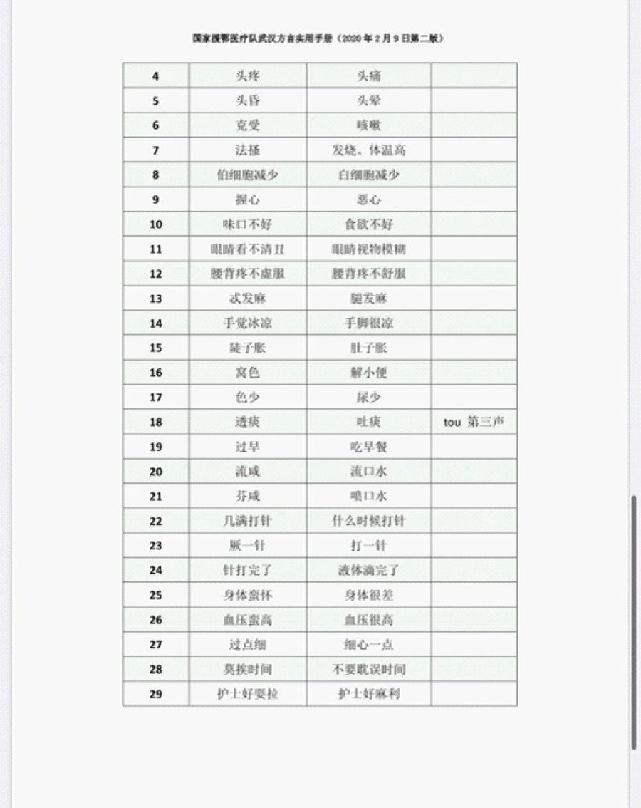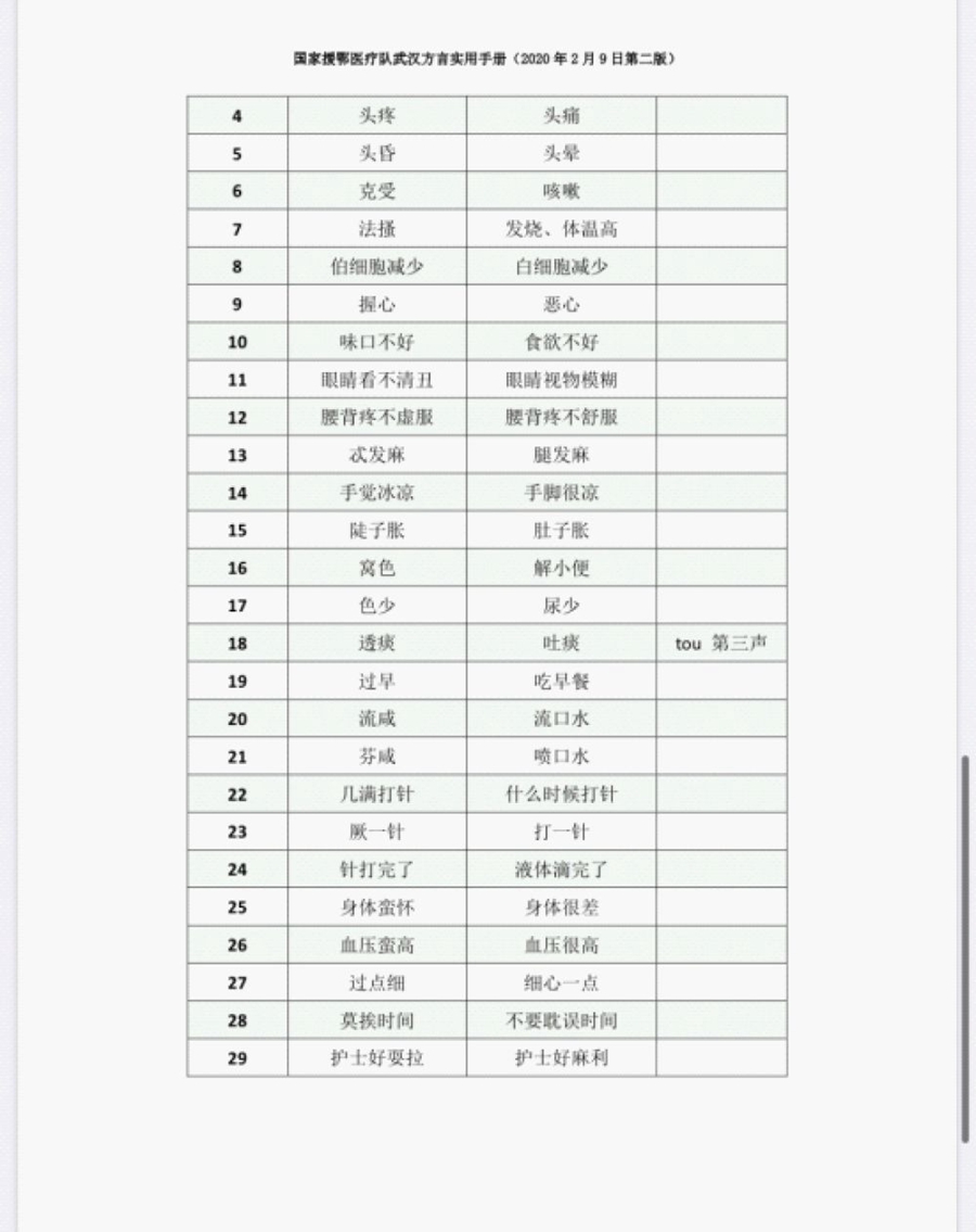 《國(guó)家援鄂醫(yī)療隊(duì)武漢方言實(shí)用手冊(cè)》