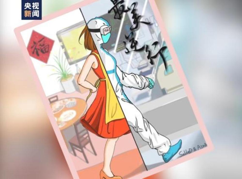 設計師董思喬的母親,是北京大學人民醫(yī)院的一名醫(yī)務工作者。在董思喬七歲那年,正逢非典暴發(fā),她的母親堅守崗位留在醫(yī)院救治患者。十七年后,新冠肺炎來襲,她看到很多醫(yī)務工作者也像當年她的母親一樣在最危險的地方戰(zhàn)斗,義無反顧,馳援武漢。于是,她拿出畫筆畫出她心中醫(yī)務工作者們最美的樣子:“身后,是飄香的飯菜,是溫馨的家;面前,是防疫一線,是需要救治的患者。逆行者們,愿你們平安歸來?!?/p>