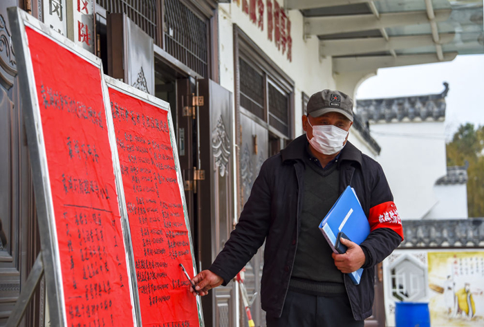 第三天,袁湖村完成全面摸排,排查出武漢返鄉(xiāng)人員39人,要求他們自覺在家隔離觀察、隨時抽查體溫。村里基本做到“六個不”:不“新香”、不拜年、不串門、不聚餐、不辦婚禮壽宴(取消7家)、不到麻將館打牌。
